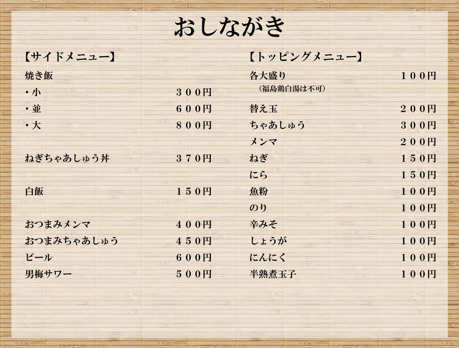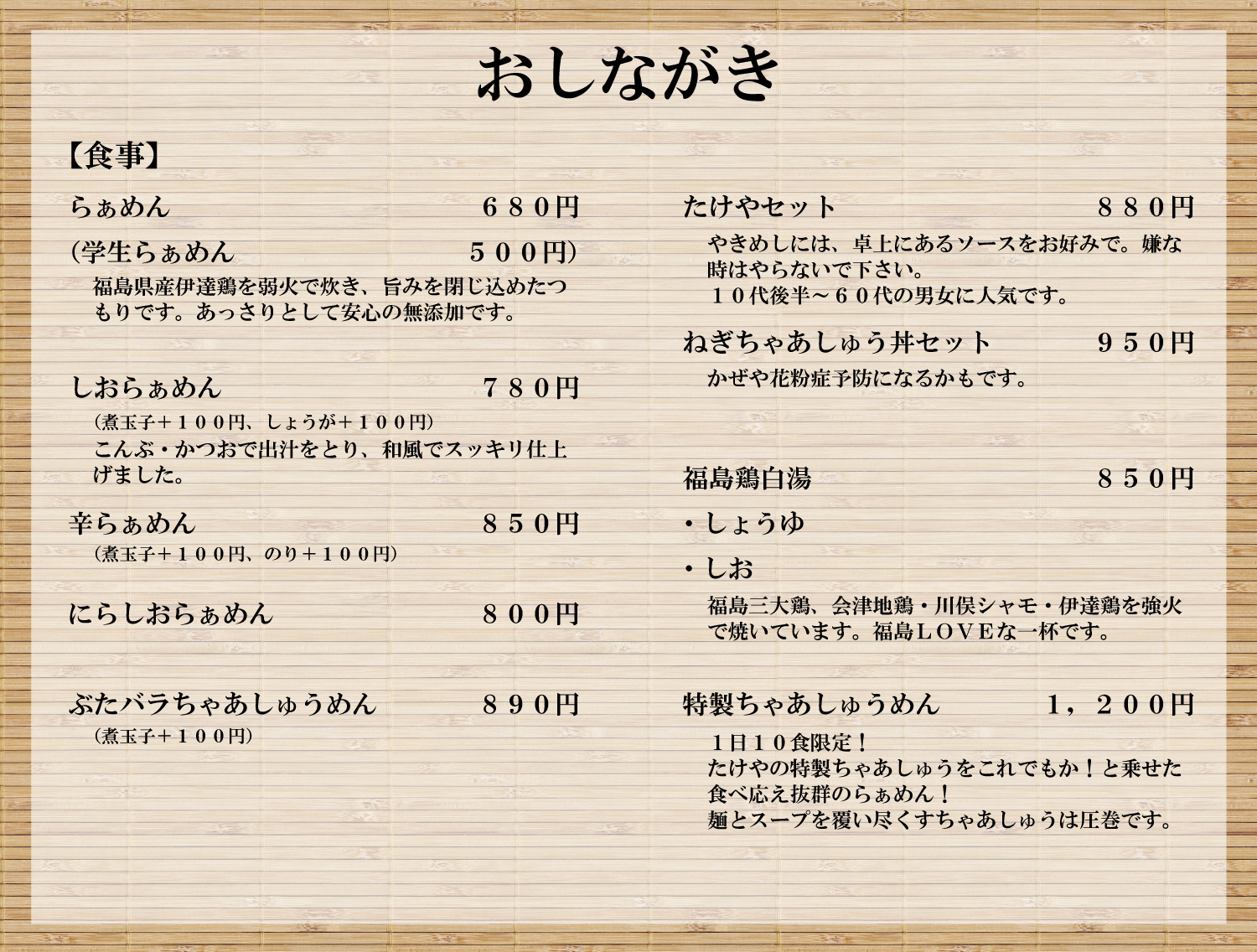 らぁめん たけや | 福島市・ラーメン・学生・学割・お得